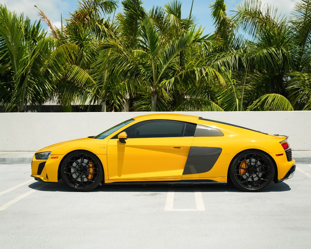 Stand out with the unmistakable roar of a naturally aspirated 5.2L V10 engine, delivering 562 horsepower and launching from 0 to 60 mph in just 3.4 seconds. The Audi R8 combines exotic design, razor-sharp handling, and supercar performance in one striking yellow package. Whether you’re making a grand entrance or chasing adrenaline, the R8 commands attention at every turn.